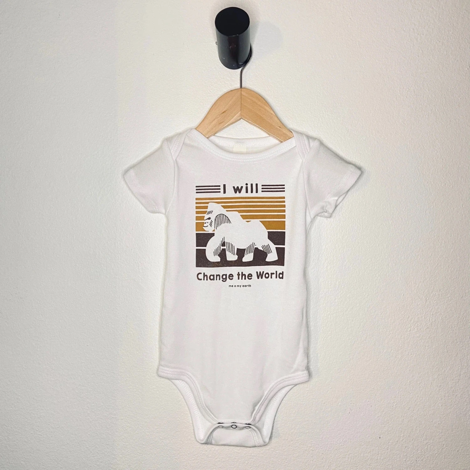 I Will Change The World – Let everyone know your little gorilla is making big moves! 100% cotton Made in US.