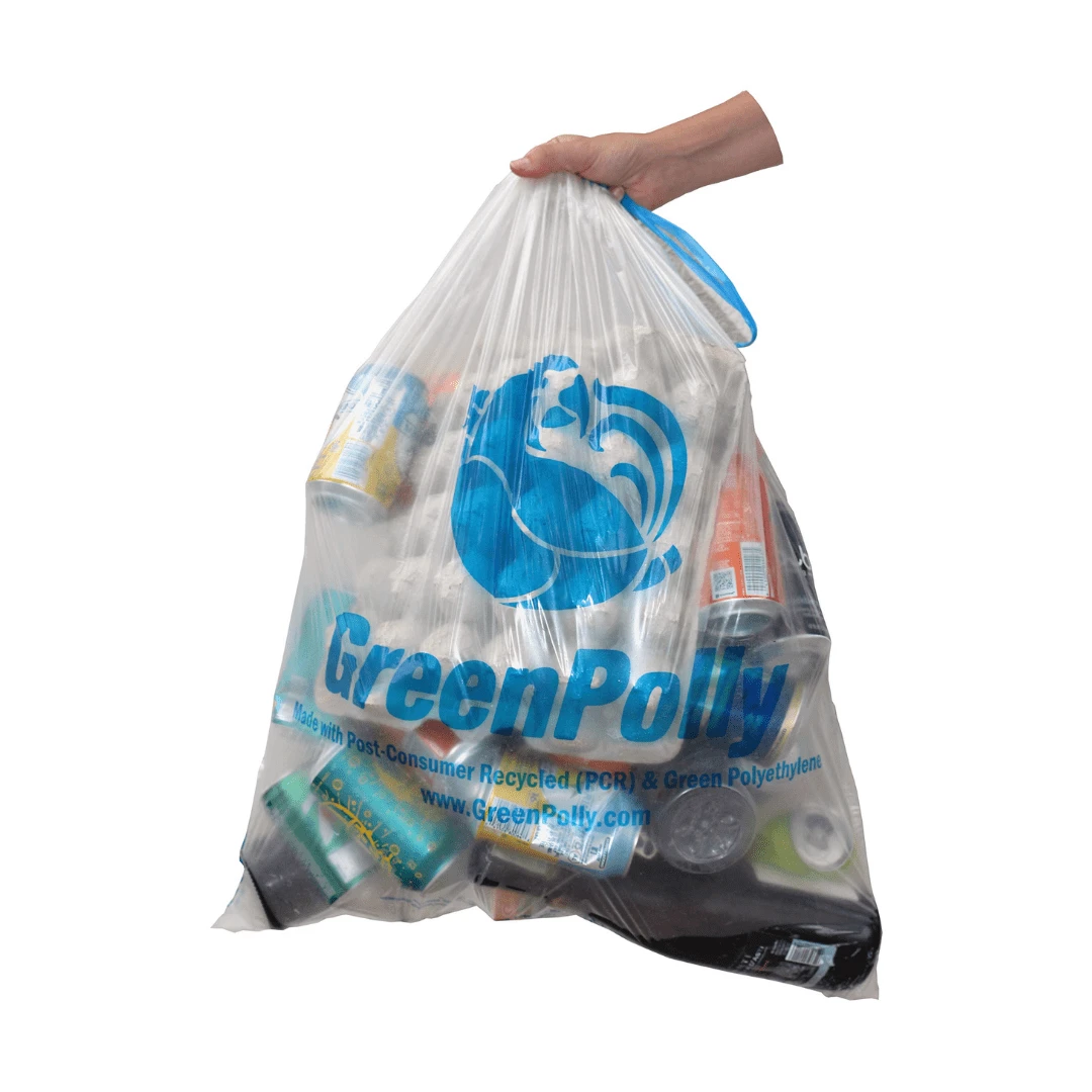Dispose of recycling and trash in a more sustainable way with these 13 Gallon Kitchen Recycling Bags! Made from 80% certified post-consumer recycled plastic and 20% bioplastic from renewable sugarcane, these 3-ply bags are durable and compatible with municipal Clear Bag recycling programs where applicable. The clear, unscented design allows you to see contents of the bag, and the 13 gallon size is compatible with most tall kitchen bins.