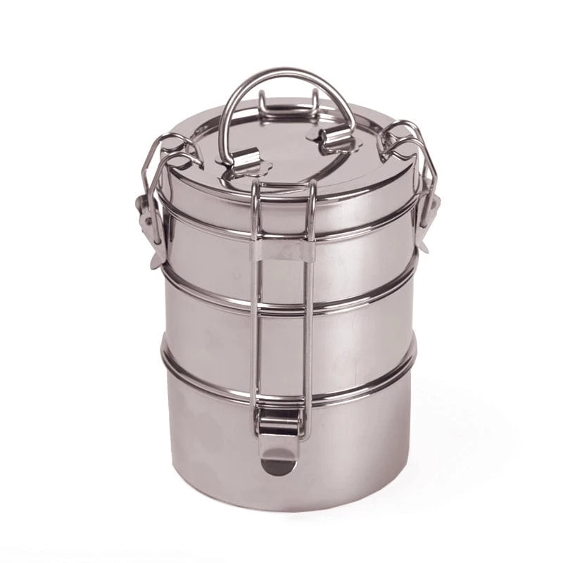 Need to pack a full meal for a picnic? Headed to the office? Problem solved with the 3-Tier Stainless Steel Tiffin! The 3 self-latching lids let you choose how many tiers to bring on your adventures. The first tier is perfect for liquids, while all tiers keep food at the right temperature. Just stack it, pack it, and hit the road!