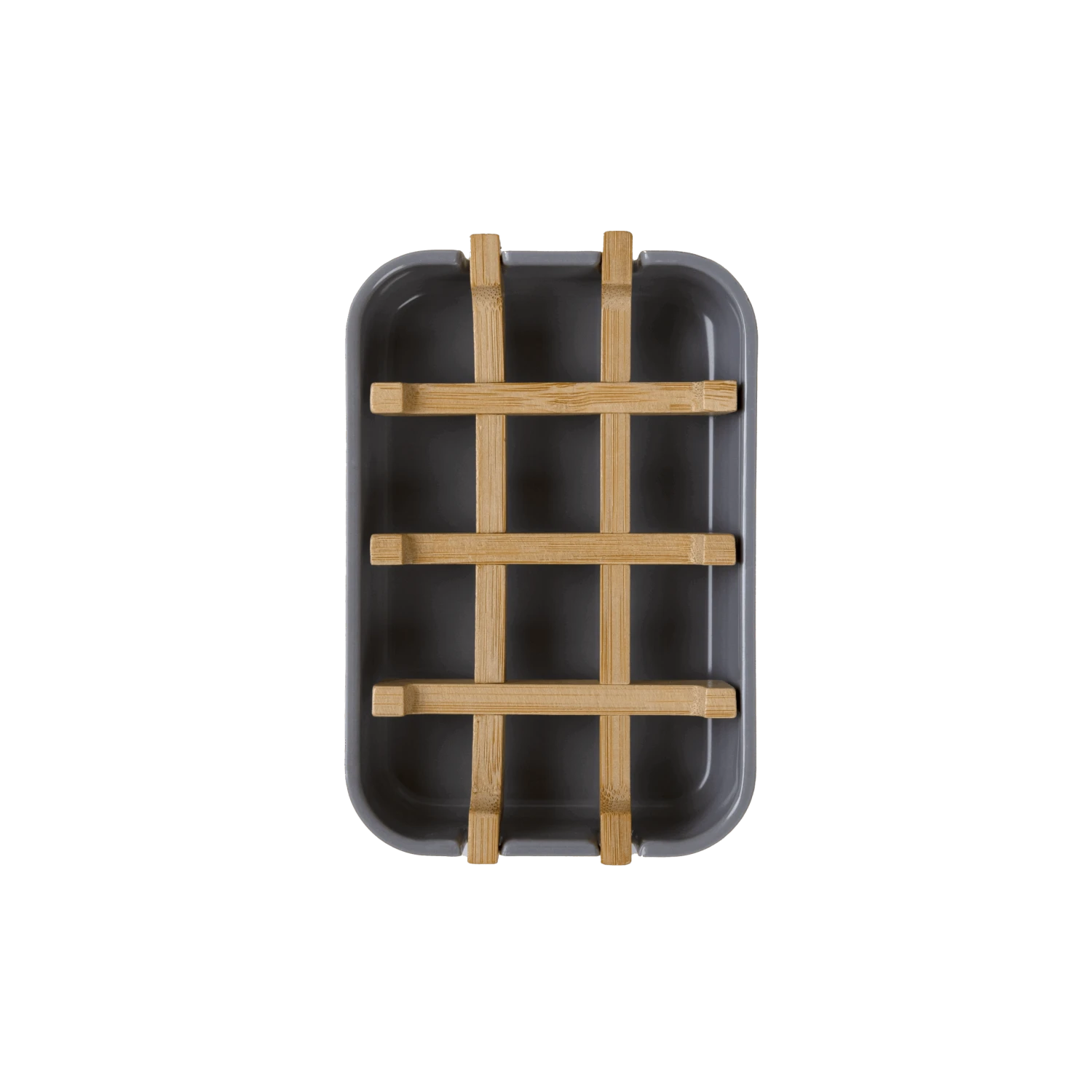 This Bamboo & Corn Starch Soap Dish quickly drains water off of your soap bars to help them last longer. The bamboo grid holds the soap above the bottom tray which catches all the water. No more sticky mess on your countertops! The bamboo grid is easily removable for cleaning.