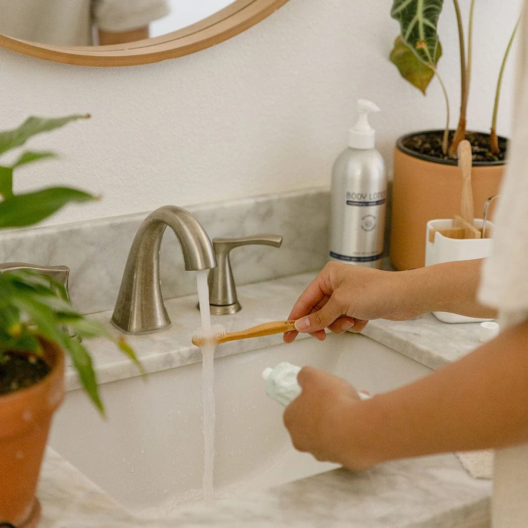 This toothbrush will keep your pearly whites clean and fresh. 100% organic bamboo and plastic-free, our zero waste Bamboo Toothbrush lasts as long as your old plastic toothbrush.