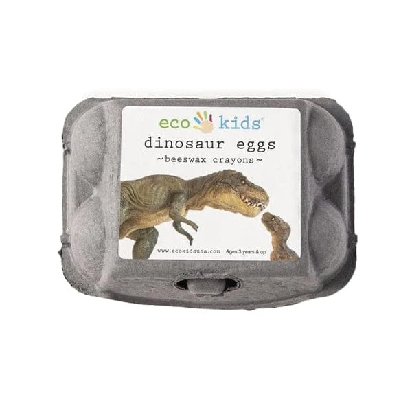 Take a prehistoric trip to the Cretaceous era with eco-kids’ Dinosaur Egg Beeswax Crayons! These six vibrant egg-shaped cuties are made with all-natural wax and pigmented with minerals. Their smooth wax and rounded edges make them perfect for little hands. And when playtime is over, store them in the post-consumer recycled egg carton they come in. These plastic-free, ASTM Toy Safety standard compliant crayons are dino-mite fun, made in Portland, Maine. Six half-eggs in a variety of colors, just right for curious little hands!