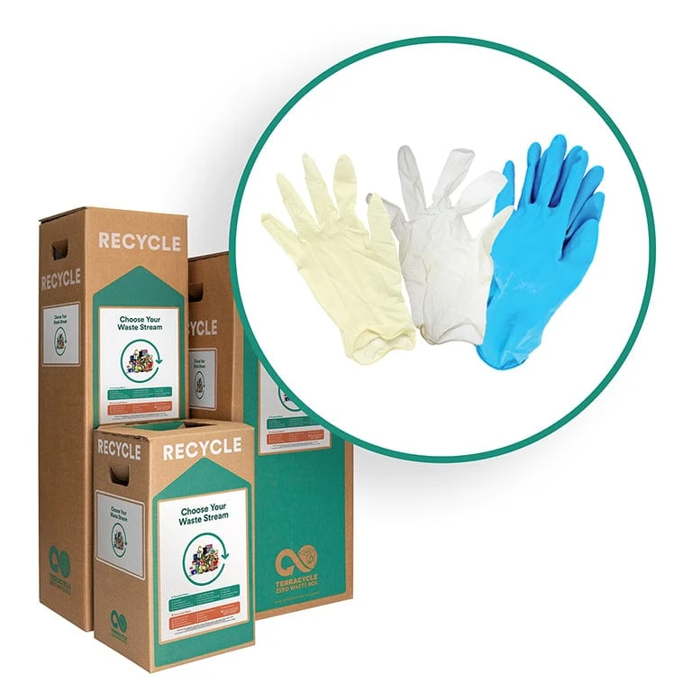 With TerraCycle’s Zero Waste Boxes, you can collect your hard-to-recycle materials, and ship them to TerraCycle for free! Terracycle will then properly recycle the items. With the Disposable Gloves Zero Waste Box, you can recycle latex, nitrile vinyl and plastic gloves from any brand that would otherwise be headed to the landfills!