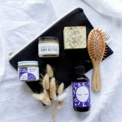 - Plastic-free Bamboo Hairbrush that helps spread the natural oils from your scalp along each strand. These oils reduce static, help detangle, and help strengthen hair