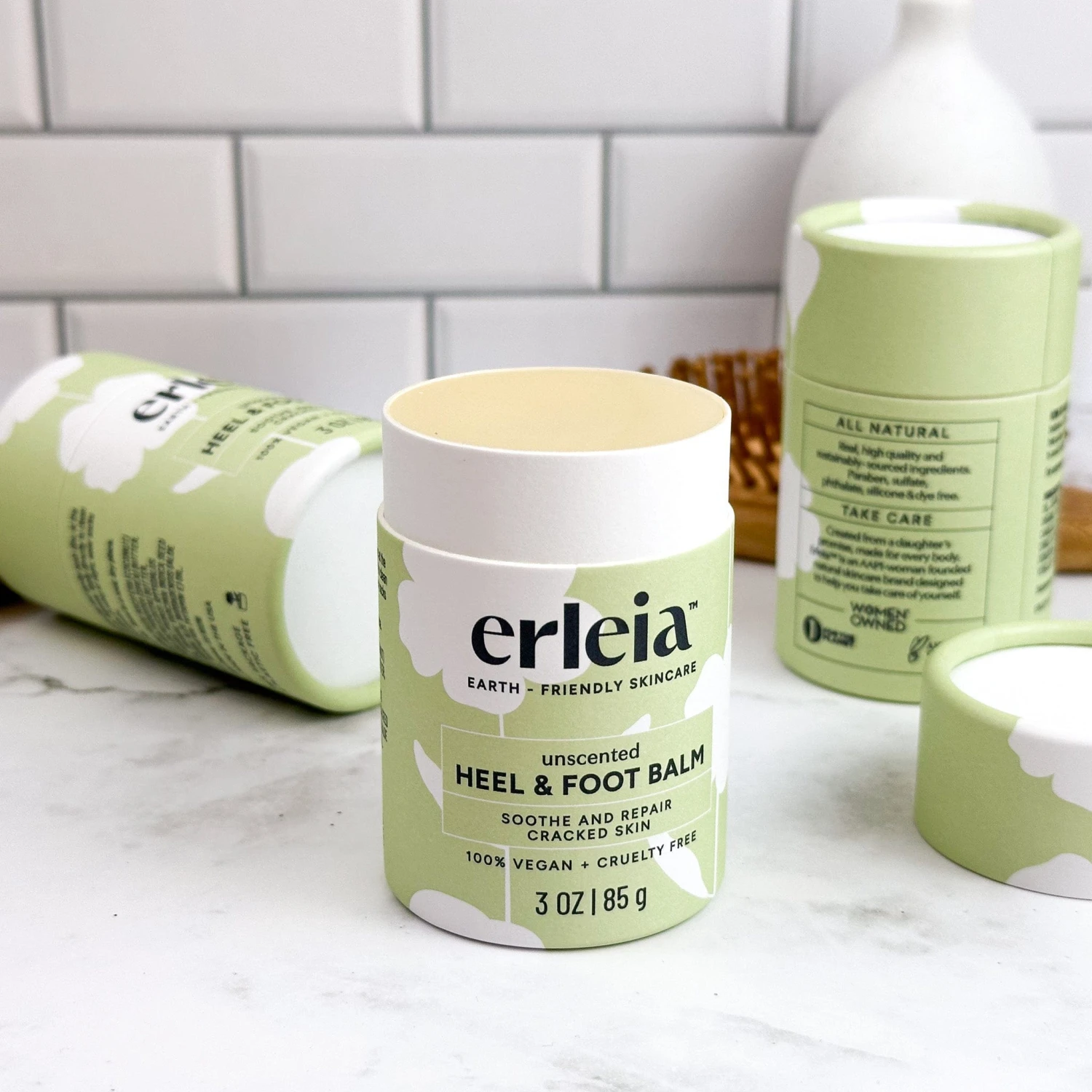 End of Life: Our heel & foot repair balm is enclosed in a 100% biodegradable and compostable paper tube, lined with a plant-based wax. This convenient packaging is both mess-free to transport and safely disposable after use, providing a low waste or zero waste alternative to plastic containers or metal tubes.