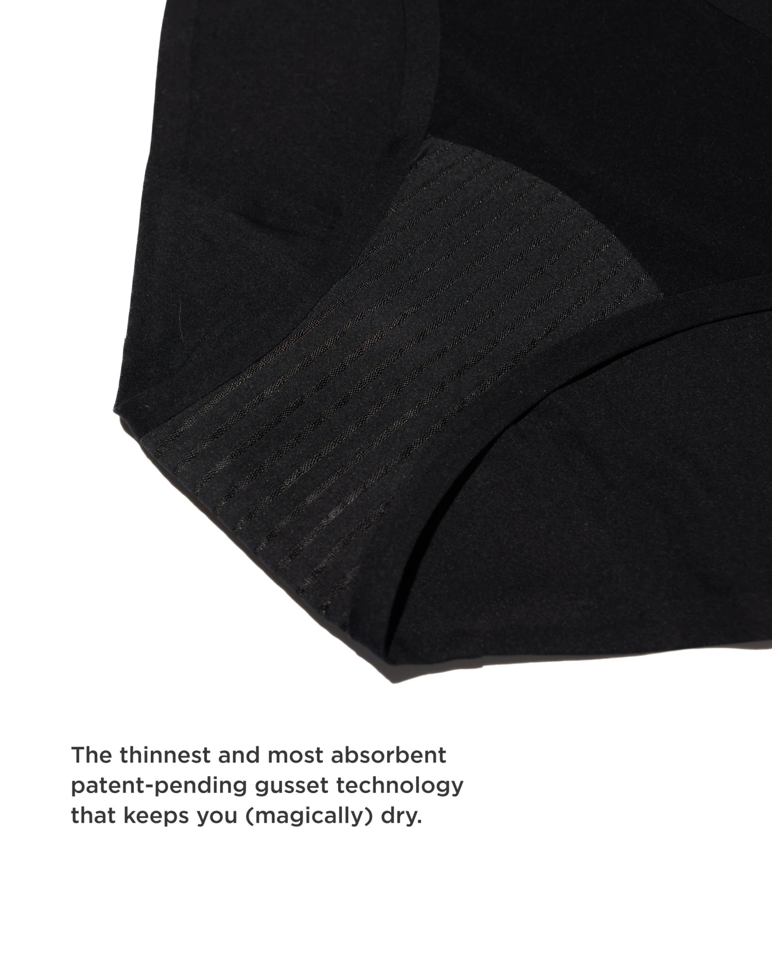 Gusset: Multi-layered absorbent and moisture-wicking fabric
