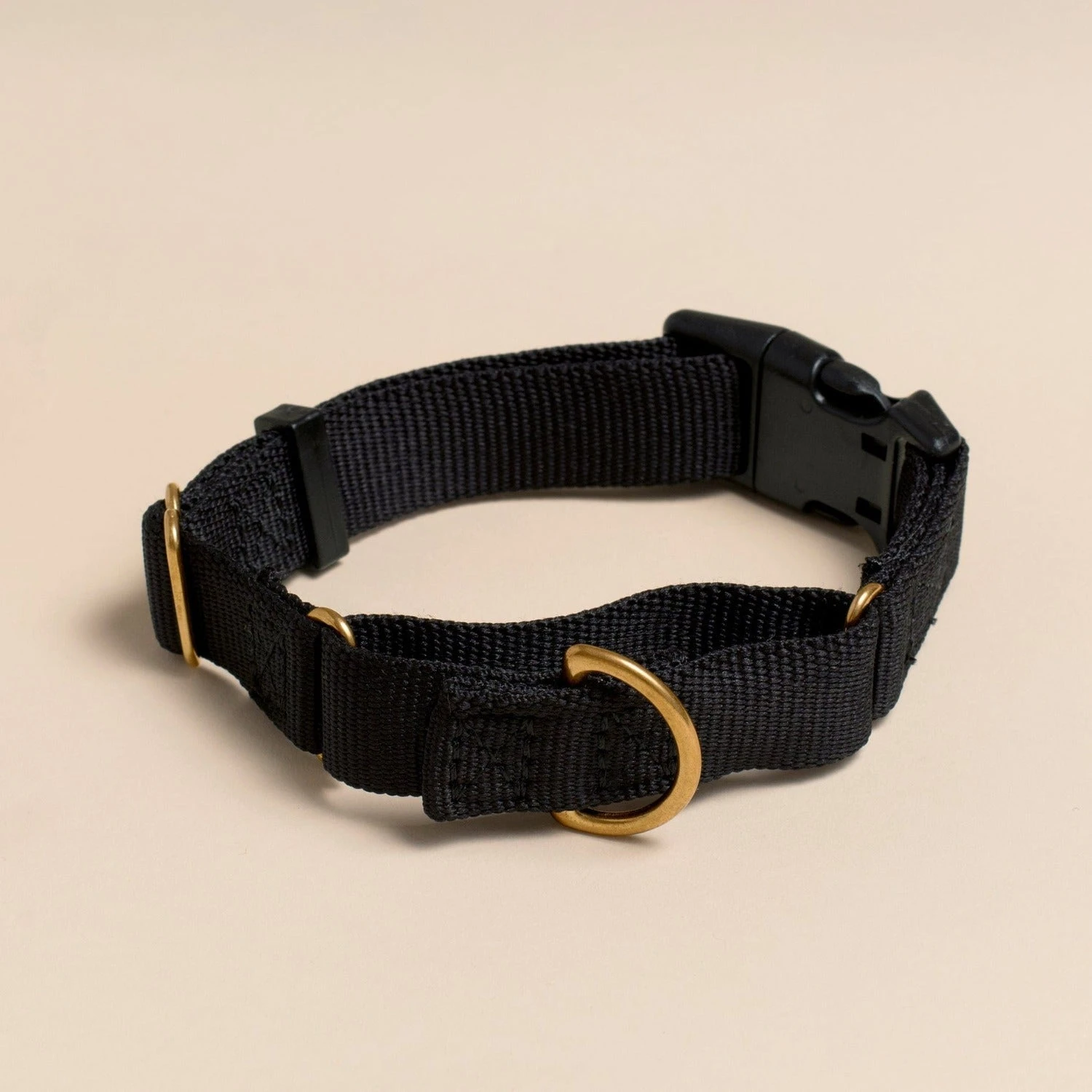 If your pup is a little Houdini when it comes to their collars, being able to back up and escape out, then the Marty collar is your secure go-to. A new breed of collar that pairs the gentle tension of a martingale collar with the added ease of a fast-release buckle allows for walks that are comfortable and safe.