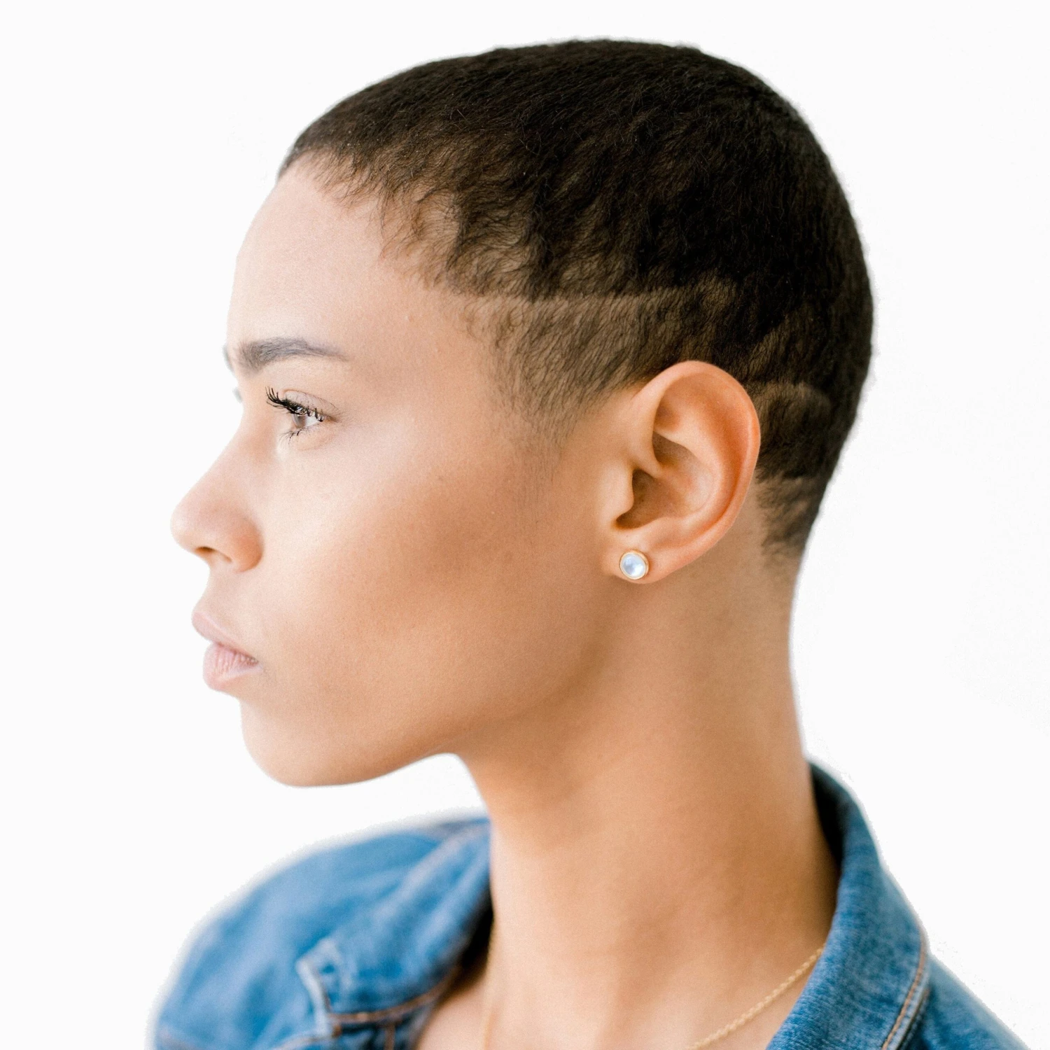 This set of Pearl Stud Earrings boasts a contemporary and delicate design that can be worn on a daily basis. They are a go-to favorite for any occasion. The stunning Mother of Pearl has a heavenly shimmer and will infuse any outfit with sophistication. 8mm round Mother of Pearl Recycled 14k gold filled.