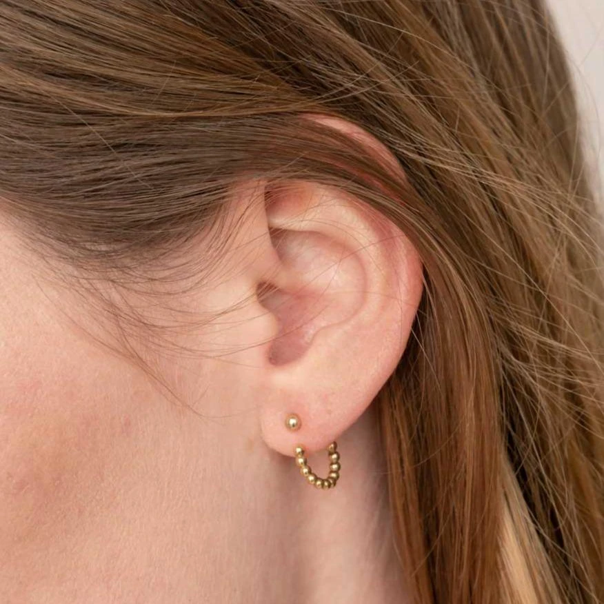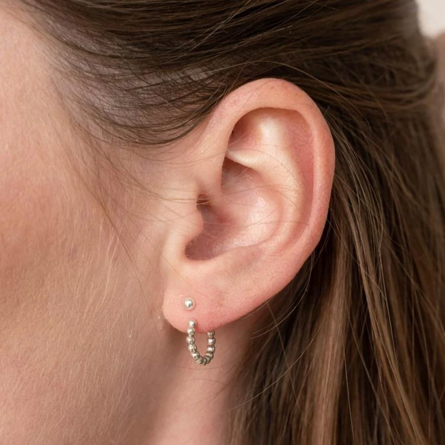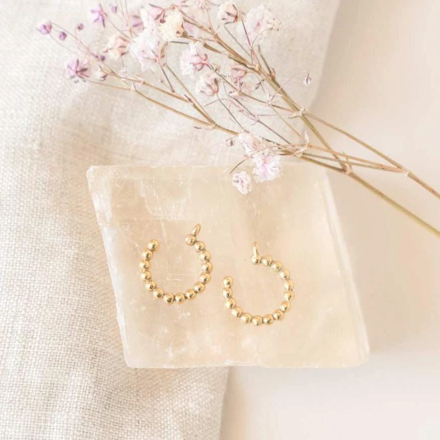 The beaded design of these recycled earrings gives them a unique twist on the classic hoop earring. Earring jackets are designed to easily slip on the post of your existing stud earrings. Sold as a pair. Note: Studs are sold separately.