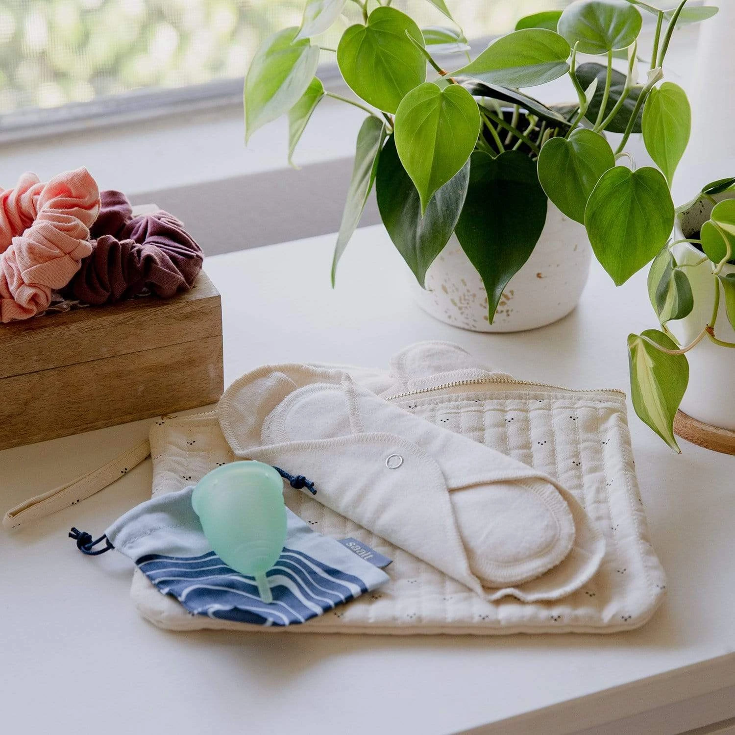Cleaning & Care: Separate inserts from the holder. Soak in cold water, if desired, to help prevent staining. Use the pre-soak function on your washing machine, or soak in a covered rust-proof container. Change soaking water often. Machine wash cold using a natural detergent or hand-wash and tumble dry low or line dry (preferred method). Do not use bleach or fabric softener. Store flat to eliminate wrinkling. Store your pads in a clean, dry place until next use.