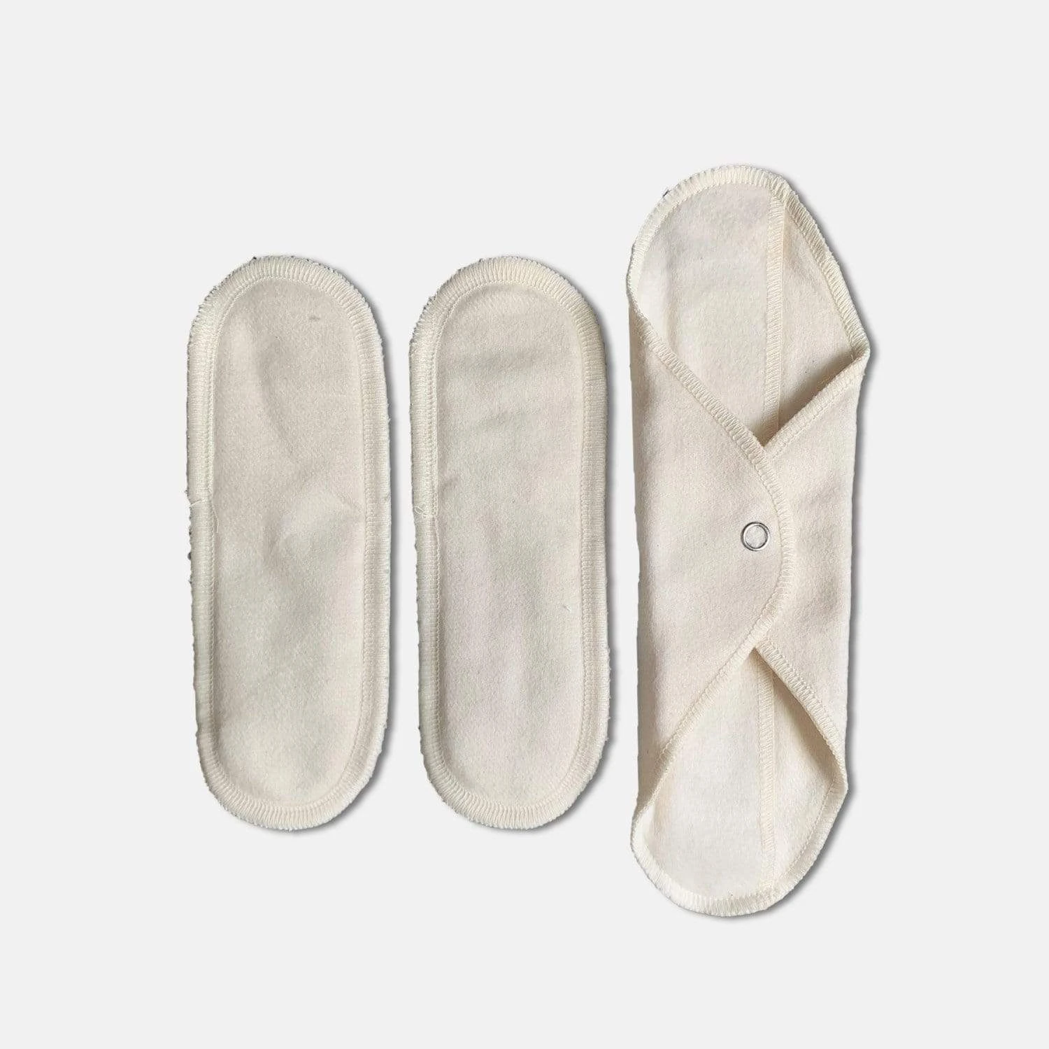 Each pad is customizable with a unique three-part design allowing you to use 1-3 absorbent inserts according to your flow. Comes unpackaged with instructions.