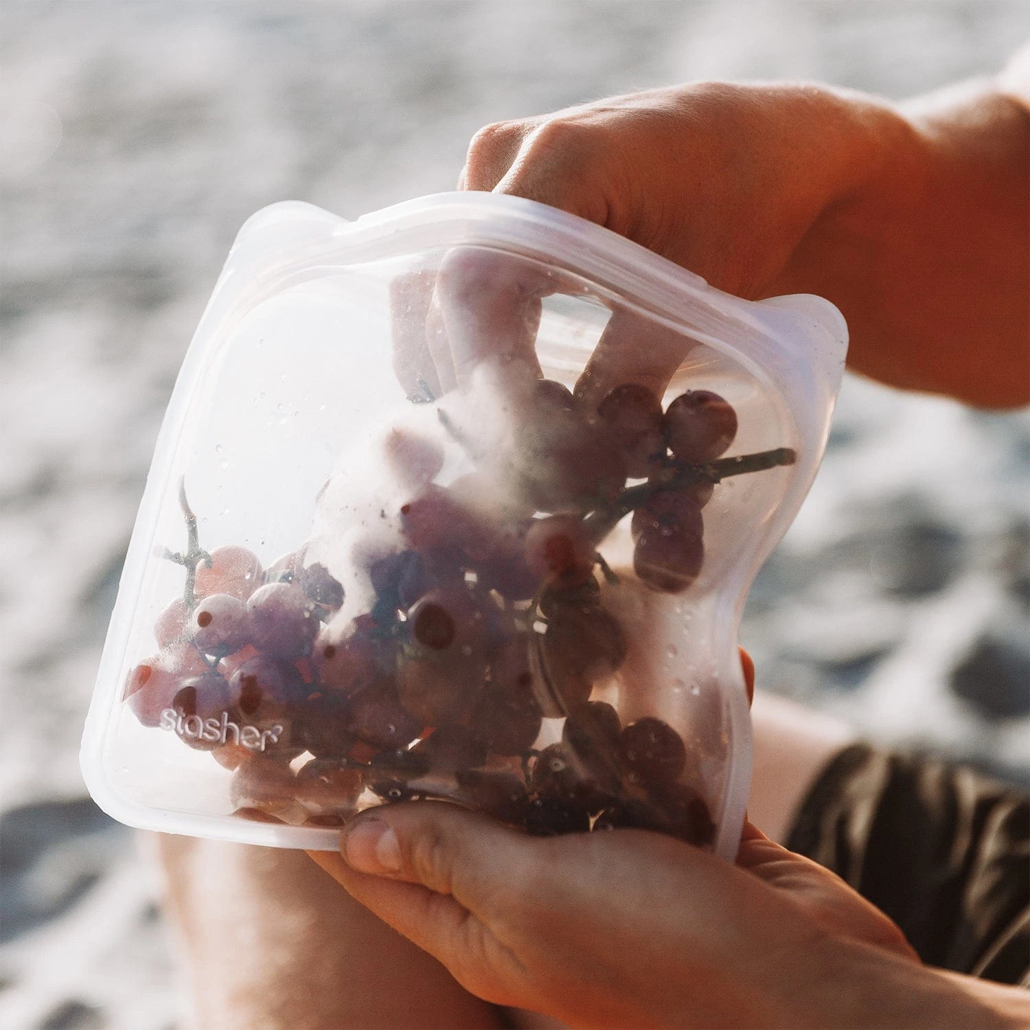 Meet the plastic-free, endlessly reusable, versatile Stasher Bag. Made of 100% pure platinum silicone, they are non-toxic, hypoallergenic, BPA and BPS free. Each bag can be reused again and again, keeping thousands of single-use baggies from entering our landfills and oceans. They feature a pinch-loc seal and are leak free, perfect for storing anything and everything! Each bag can holds one healthy-sized sandwich, about 10 homemade granola bars, the loose items in a kitchen drawer, or some of your personal care items for travel.