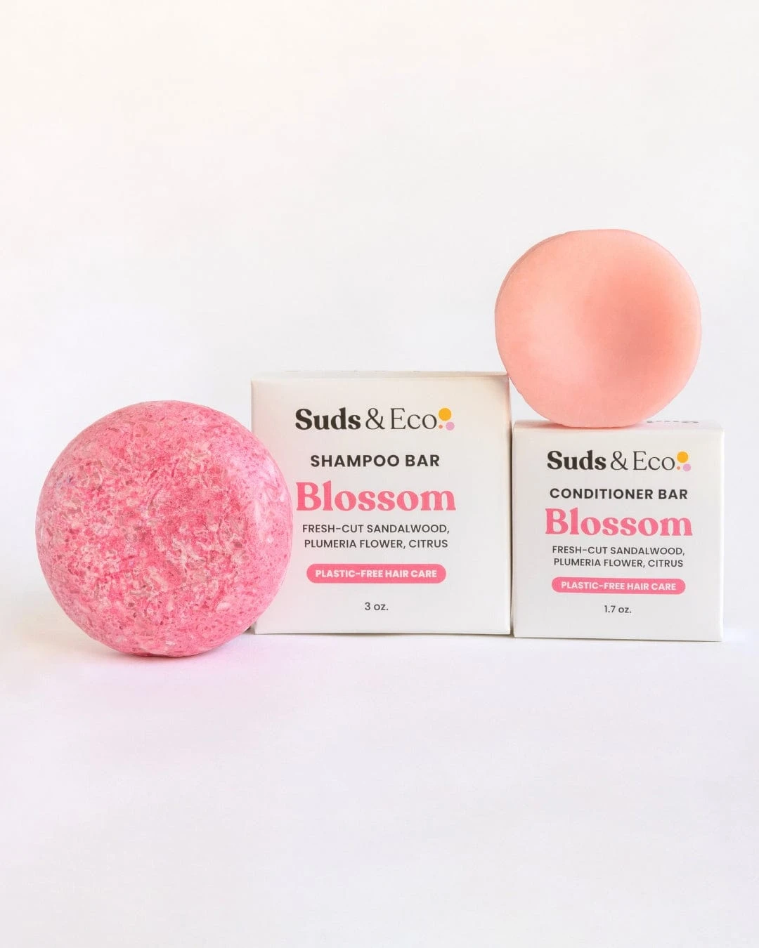 Our #1 best-selling, zero waste Shampoo & Conditioner Bars are made with salon-quality ingredients and teeming with an abundance of intoxicating oils and vitamins. Each nutrient-packed bar naturally removes buildup, promotes fullness, and leaves your hair soft, tangle-free, and super healthy!