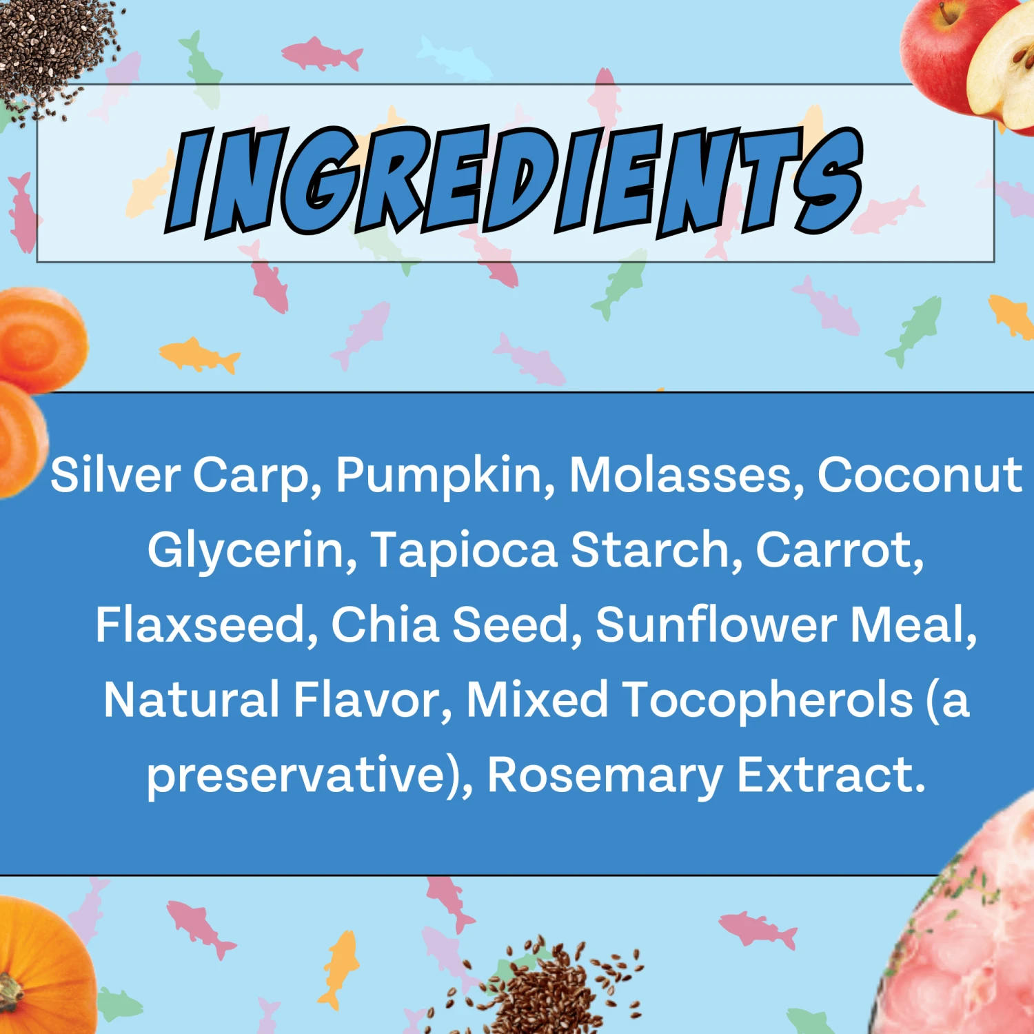 Ingredients: Cricket Protein, Sweet Potato, Flaxseed, Rolled Oats, Applesauce, Brewer’s Yeast, Spirulina, Mixed Tocopherols (natural preservative)