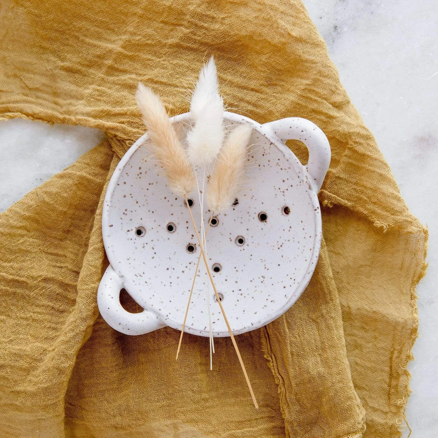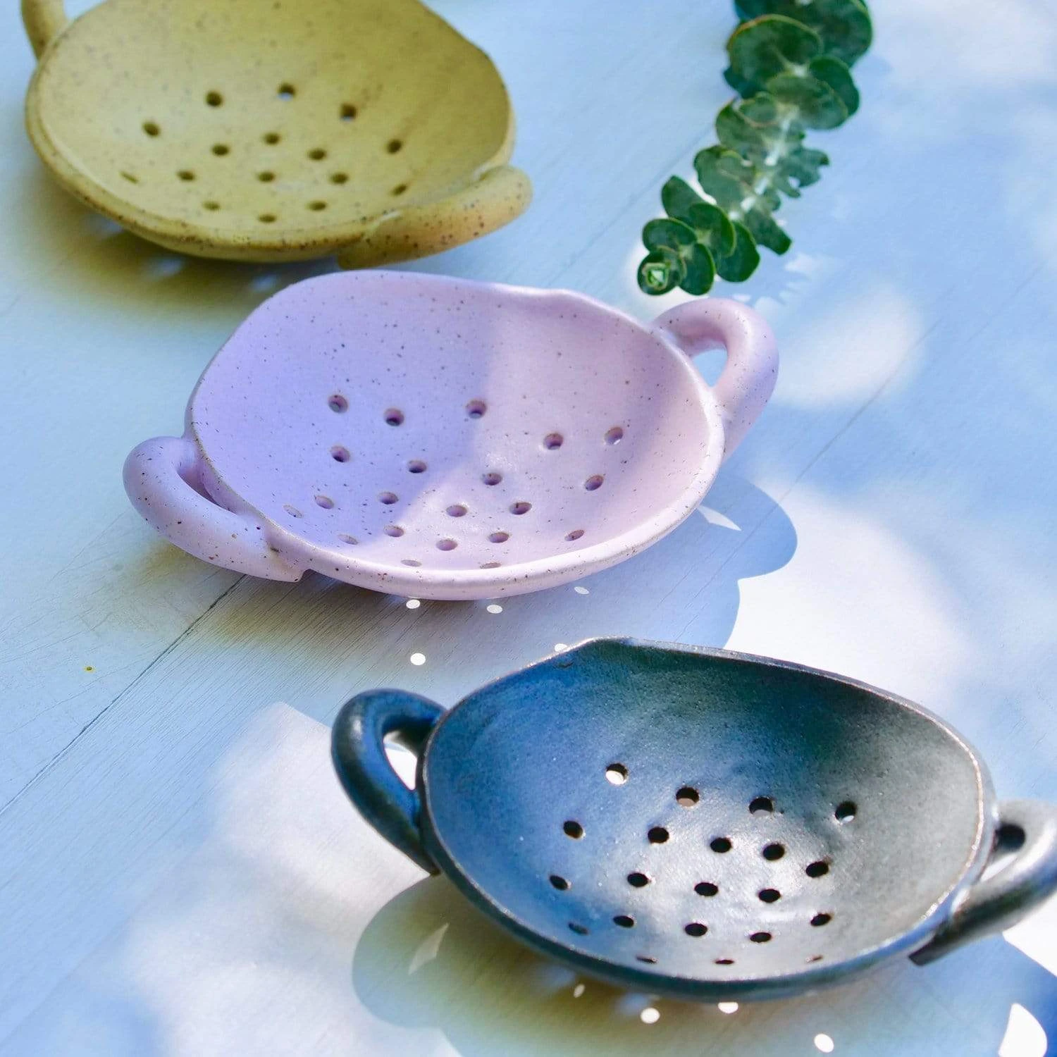 Rusticate your home with a hand-created ceramic Soap & Brush Dish to carry your dish brushes or soap, shampoo, or conditioner bars in the cutest way. Inspired by colander berry bowls with its aerated basin, each unique dish is roughly 4” diameter and a beautiful reminder of a much simpler time.