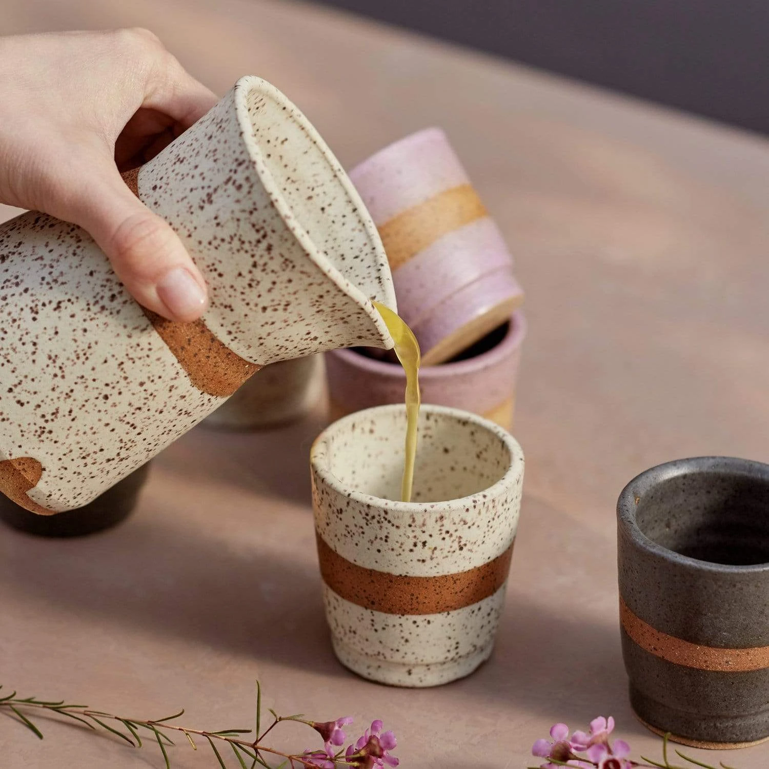 Whether it’s a shot of espresso or morning tea time, these tiny handmade ceramic stackable cups will bring a smile every morning.