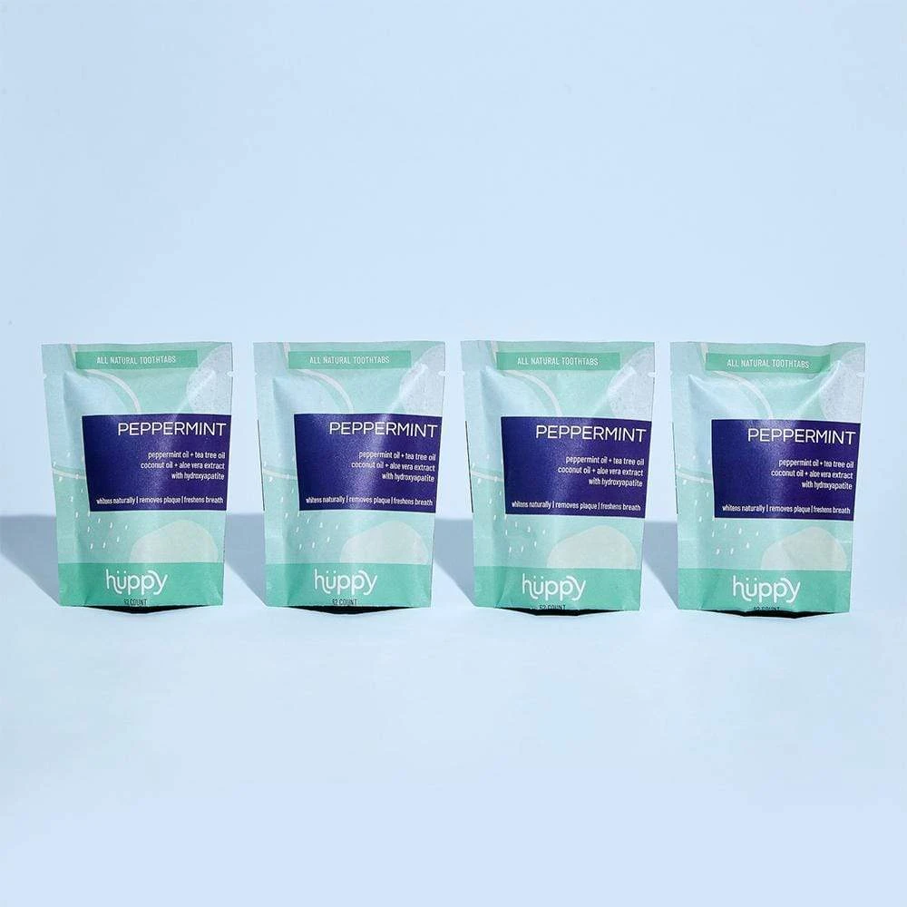 Brighten up your daily routine with a refill supply to Huppy Toothpaste Tablets with nano-hydroxyapatite, a non-toxic fluoride alternative. Refill pouches are made from 100% paper and are backyard-compostable. Made with clean, sustainable ingredients like peppermint oil, coconut oil, aloe vera extract, and xylitol. Foams easily and completely non-chalky.