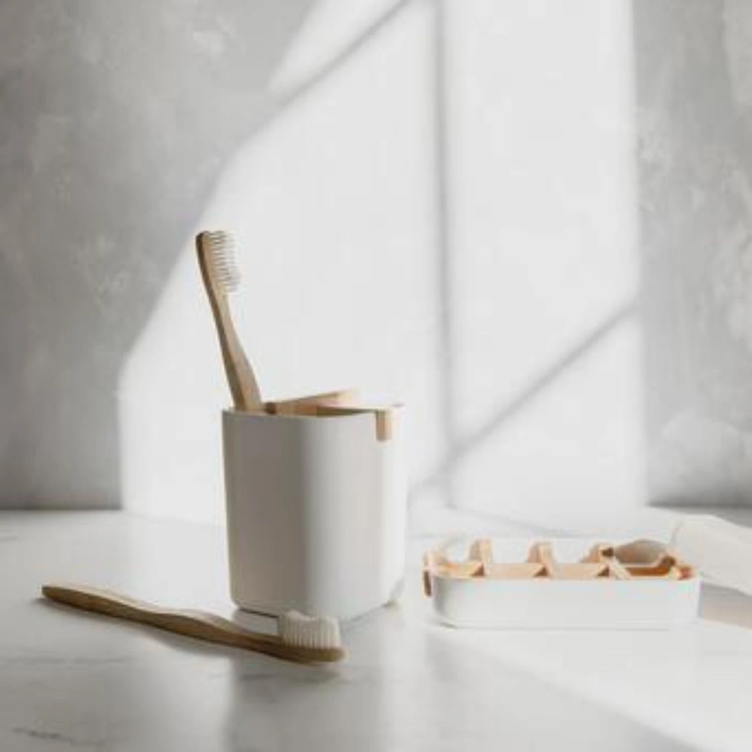 Organize your countertops and extend the life of your bar soaps with this sleek, eco-friendly bundle. Available in black or white, every bathroom or kitchen can coordinate with this minimalist design duo. The brush holder makes a great organizer for makeup brushes, pens and pencils, your toothbrushes, or dish brushes!