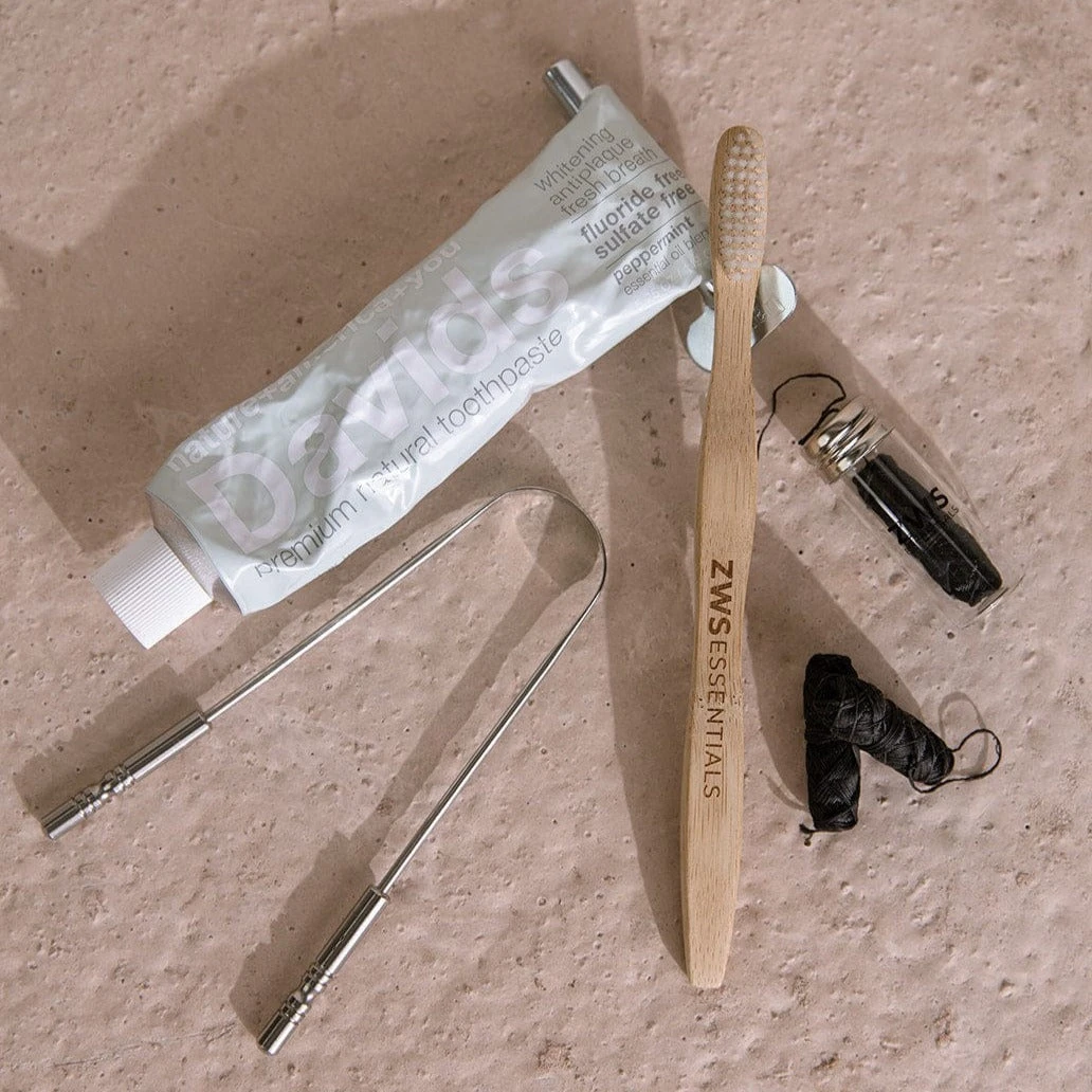 A healthy mouth is just as important as a healthy environment! You can do both with this eco-friendly oral hygiene kit! Replace plastic toothbrushes with eco-friendly bamboo, disposable floss with compostable floss, and plastic toothpaste tubes with our 100% recyclable metal tube or glass jar!