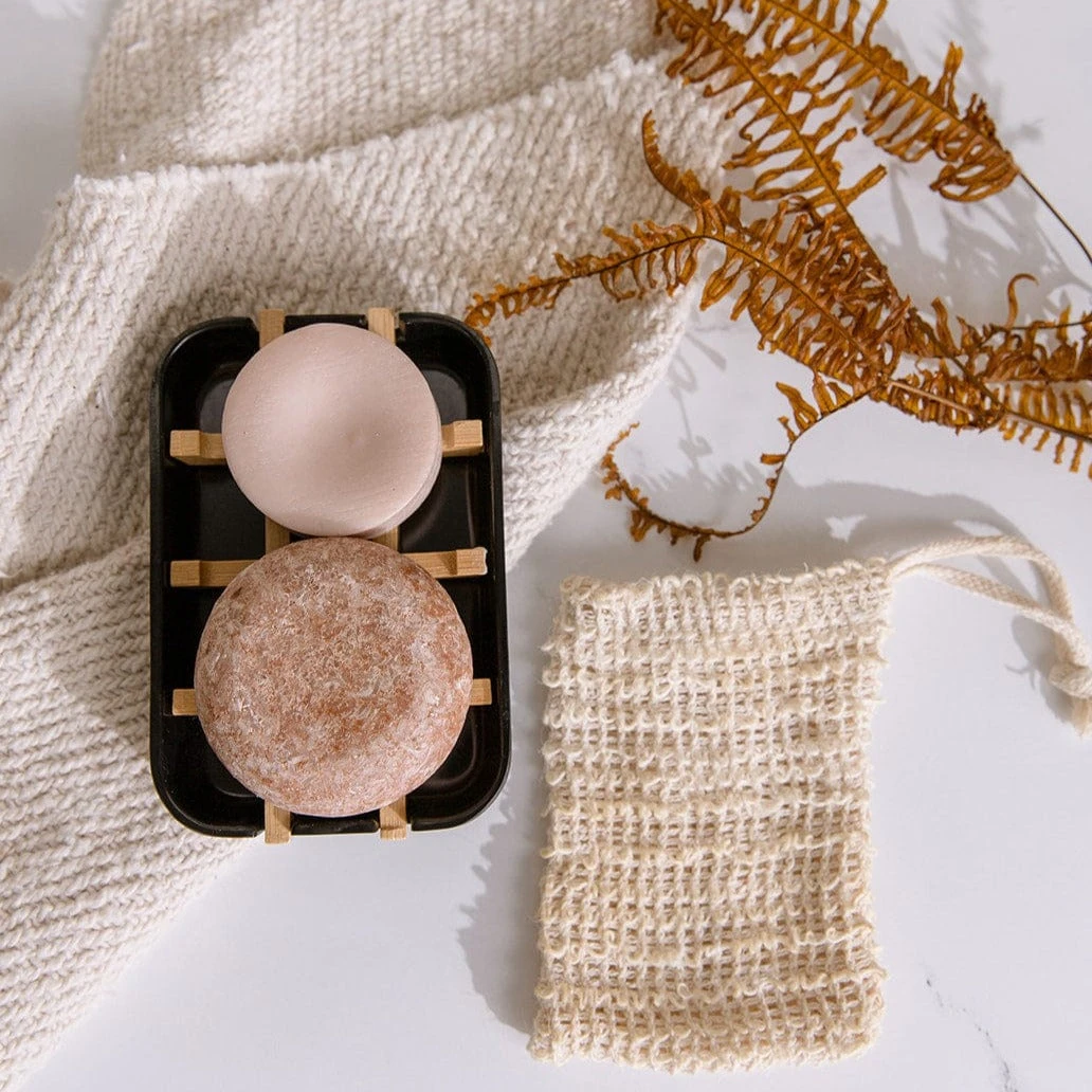 Includes: Shampoo Bar, Conditioner Bar, Plastic-Free Soap Dish, Agave Soap Saver Bag